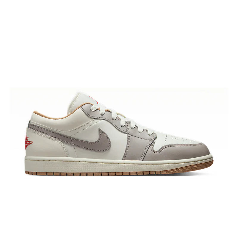 The Jordan 1 Low Dune Red is a low-top basketball silhouette with a classic design...