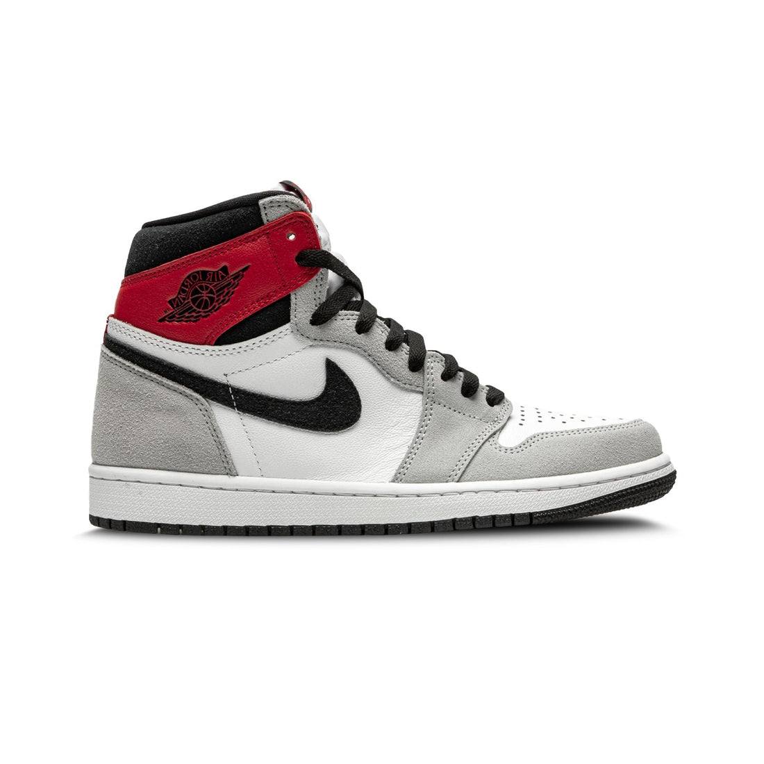 The Air Jordan 1 Retro High OG 'Smoke Grey’ showcases a pop of Varsity Red...