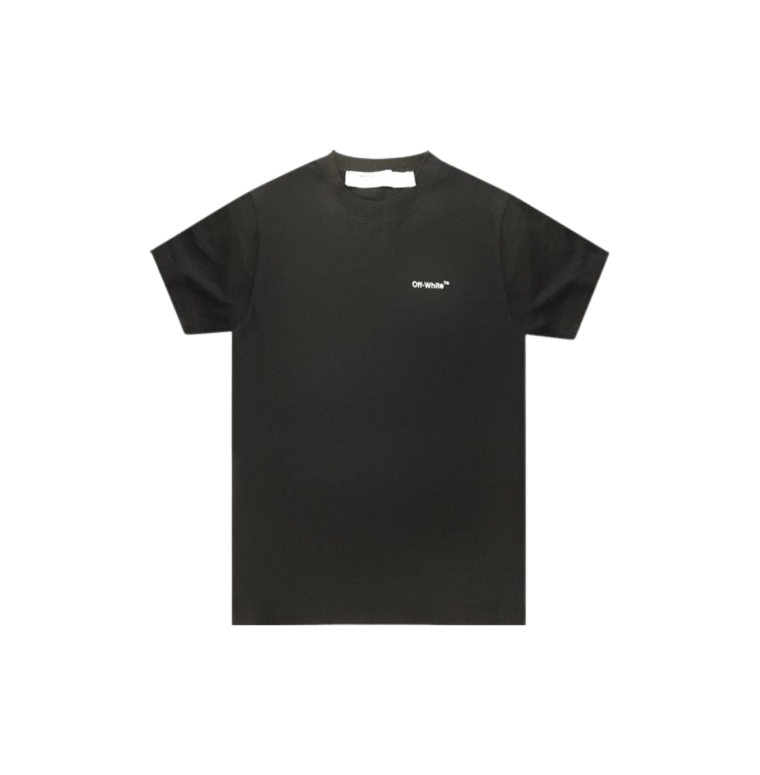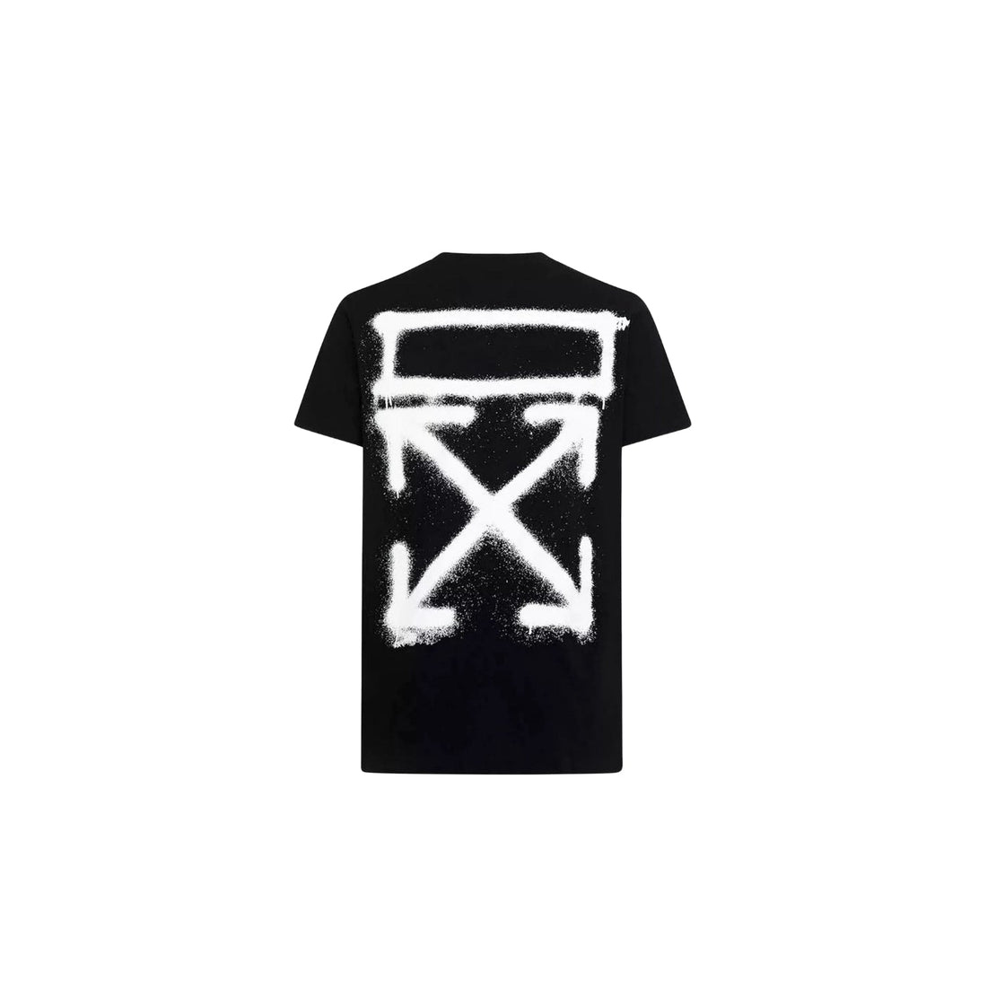 Short sleeves T-Shirt in black with "Off" hand logo printed in white at chest. White sprayed-effect arrows printed at back. Crewneck collar. Slim fit.