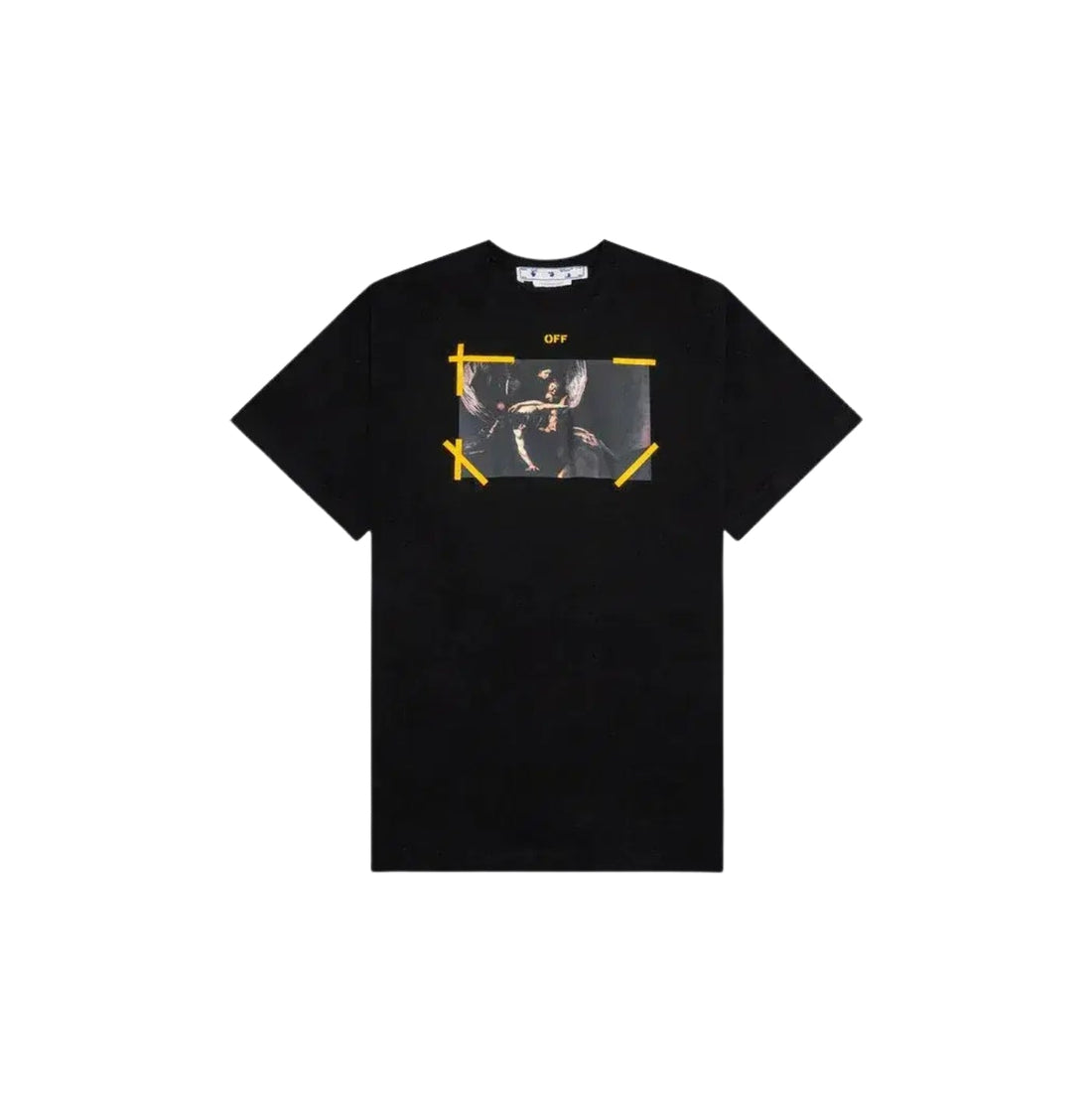 Short sleeves t-shirt in black with Caravaggio painting at front featuring Off-White™ white logo and...