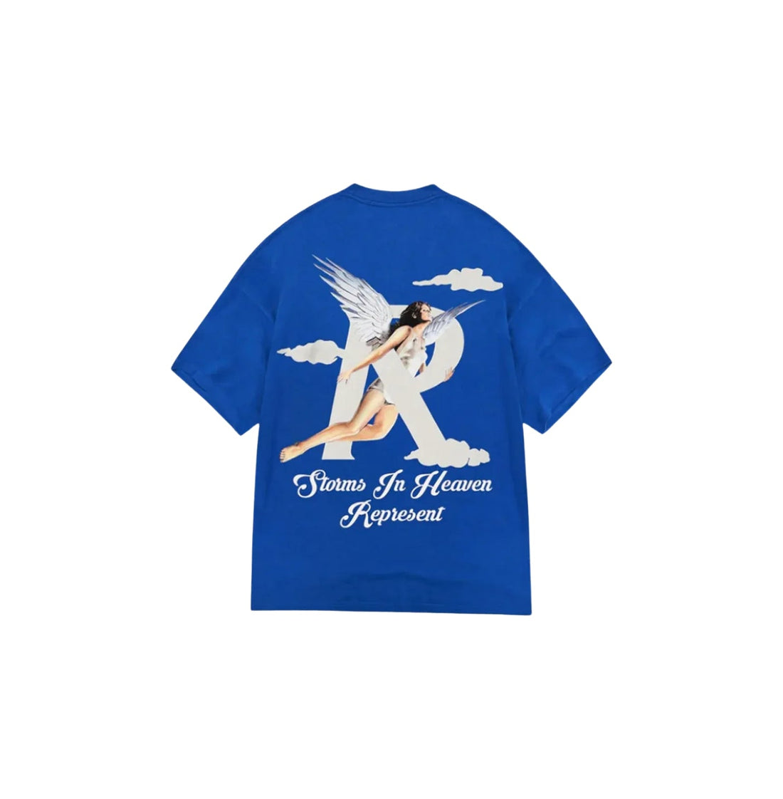 The Represent Storms In Heaven T-shirt in Cobalt features a striking graphic inspired by the...