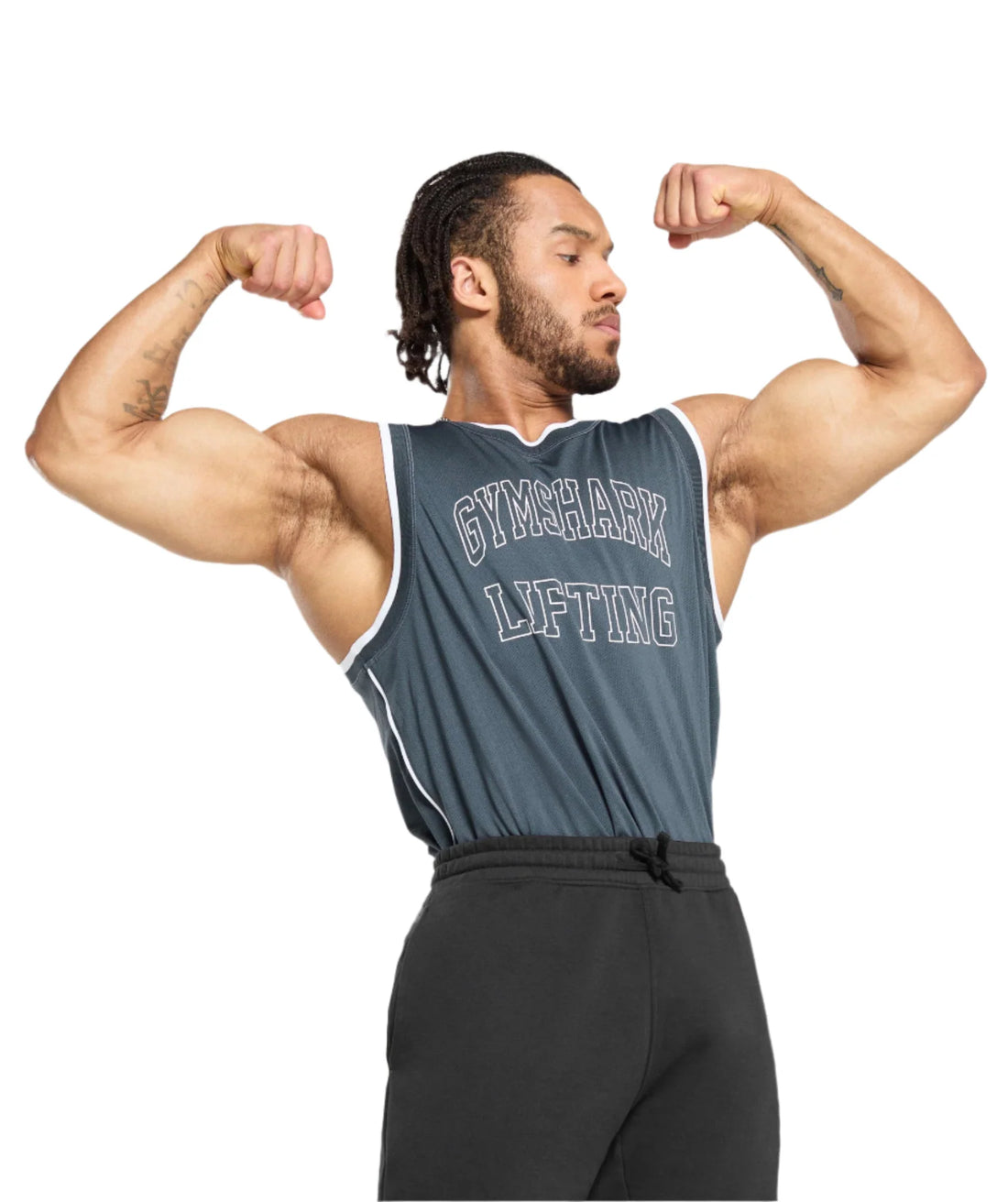 Engineered for performance, the Graphic Basketball Mesh Tank in Silver Grey offers superior breathability with...