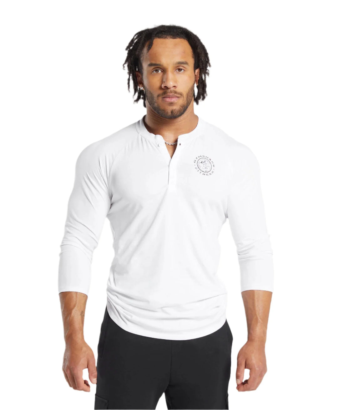 Elevate your gym attire with the Gymshark Legacy Henley in white. This premium workout top...