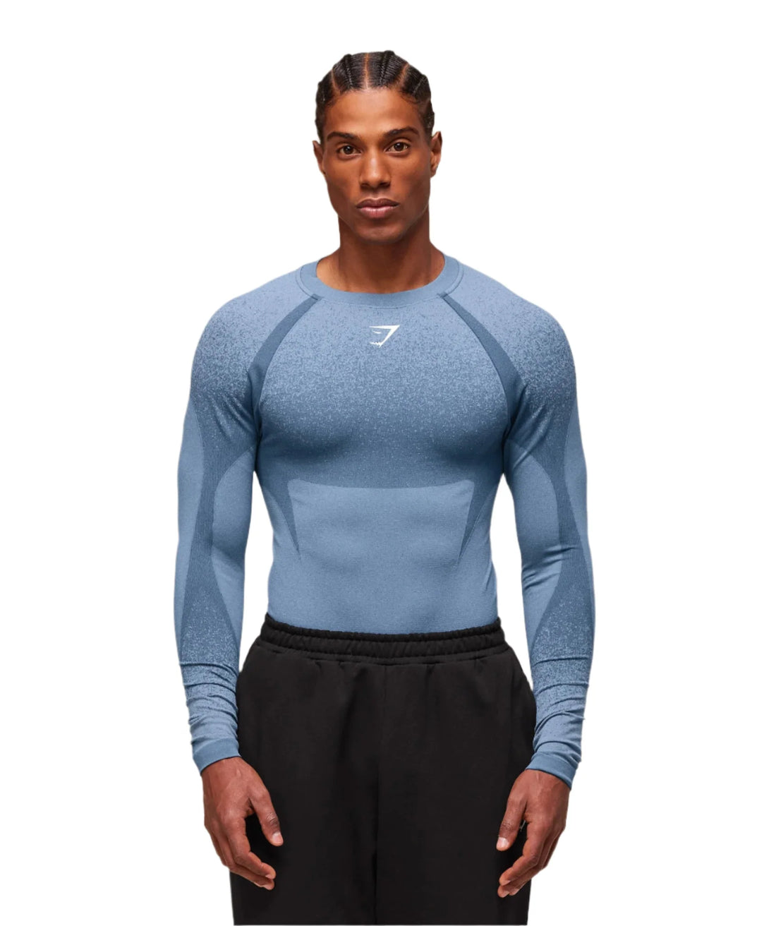 Gymshark Shadow Seamless Long Sleeve T-Shirt - Faded Blue