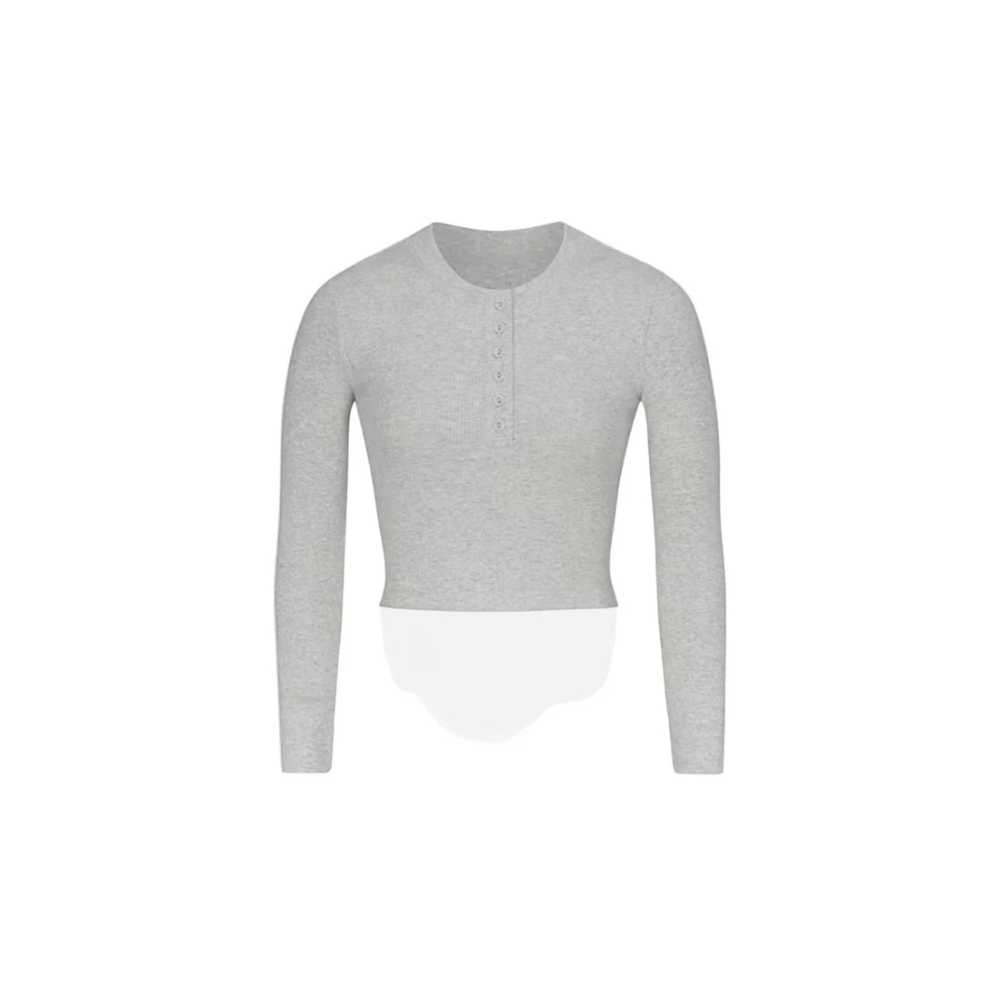 COTTON RIB LONG SLEEVE CROP HENLEY LIGHT HEATHER GREY
