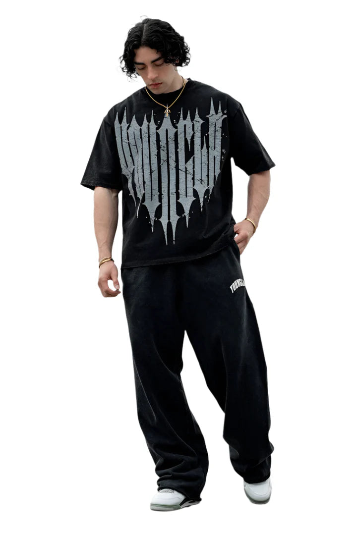 The YOUNG LA 2088 New Wave Baggy Sweats in Black Wash combine relaxed comfort with...