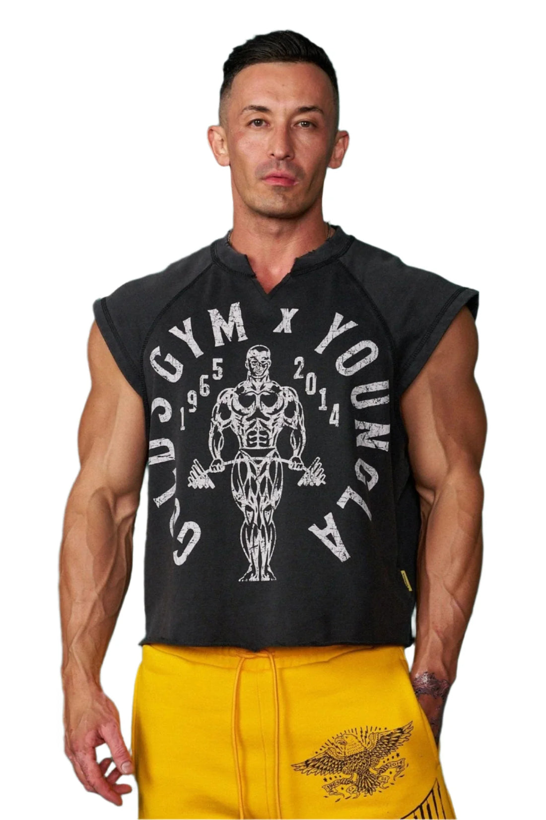 The YOUNG LA 5069 Golds Gym Vintage Cut Offs in Black Wash combine retro-inspired design...