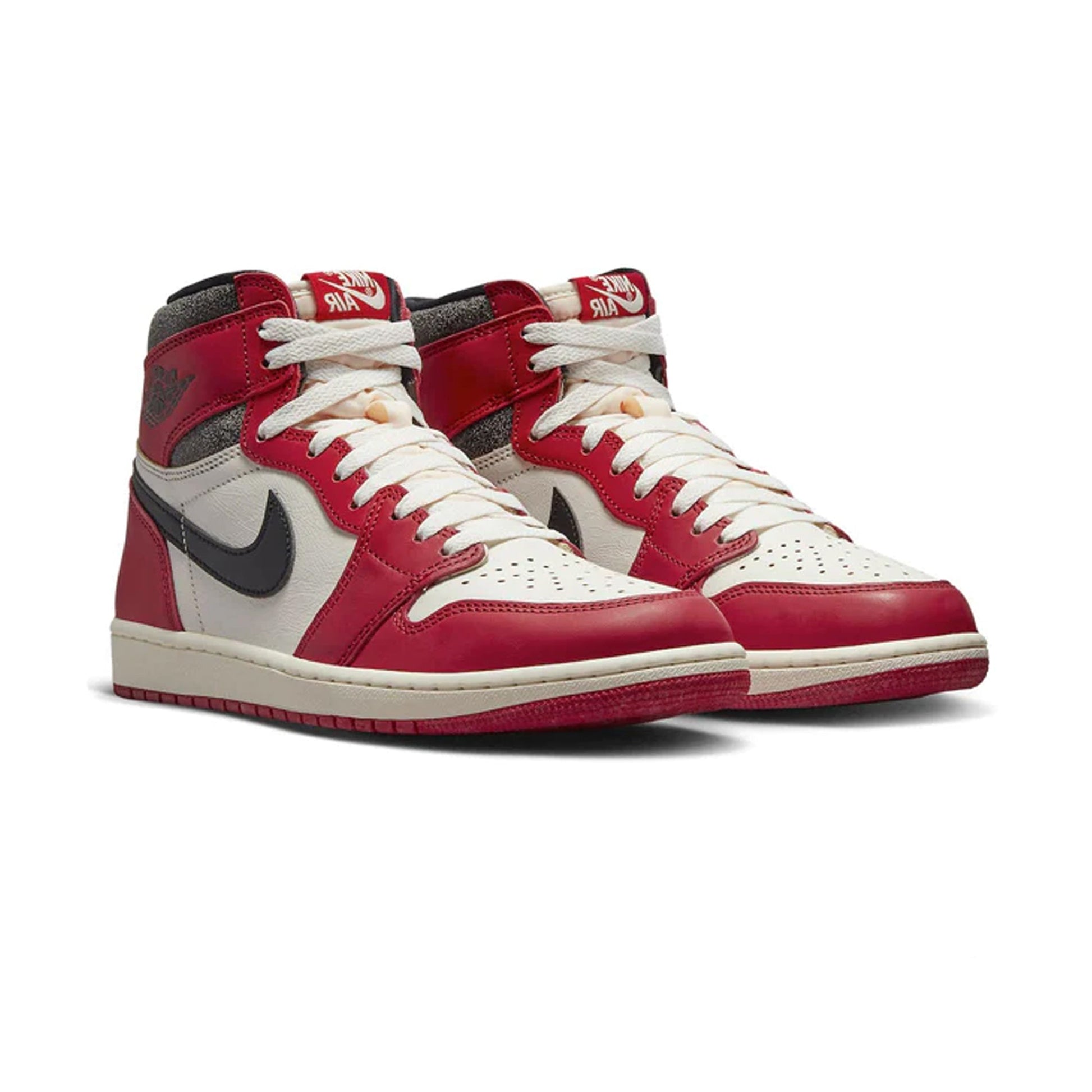 The Air Jordan 1 Retro High OG ‘Chicago Lost & Found’ brings back the iconic silhouette that started it all. Featuring the high-cut shape of the original 1985 release, the leather upper combines a white base with a black signature Swoosh and scarlet overlays at the forefoot and heel. Cracked black leather appears on the padded collar, while a vintage pre-yellowed finish is applied to the white rubber midsole. The vintage ‘80s aesthetic extends to the special packaging, highlighted by a damaged box plastered with sale stickers and topped with a mismatched replacement lid. An accompanying sales invoice is emblematic of a time when the Air Jordan 1 lingered on the shelves of mom and pop stores, eventually making their way into the hands of lucky customers at a steep discount.