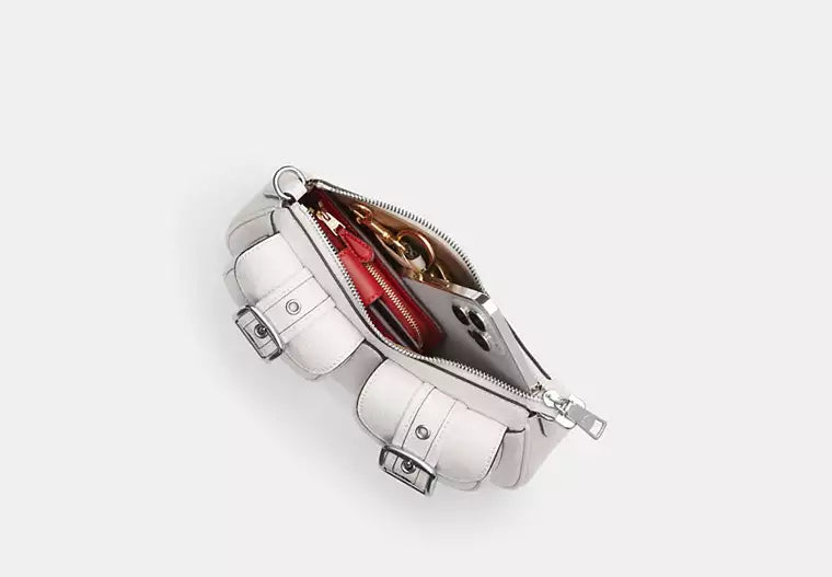 Detachable strap with 23 1/4" drop for shoulder or crossbody wear