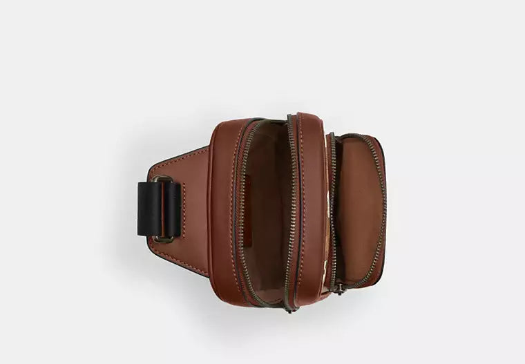 The Coach x Peanuts Racer Sling Pack In Signature Canvas With Snoopy Print brings playful character to a sleek, hands-free design. Crafted in signature coated canvas with smooth calf leather accents, it features a compact shape with a secure zip closure and an outside zip pocket for quick access. The adjustable strap clips on either side for versatile crossbody wear. Celebrating the 75th anniversary of Peanuts, this special-edition piece showcases Snoopy in a fun, collectible design.