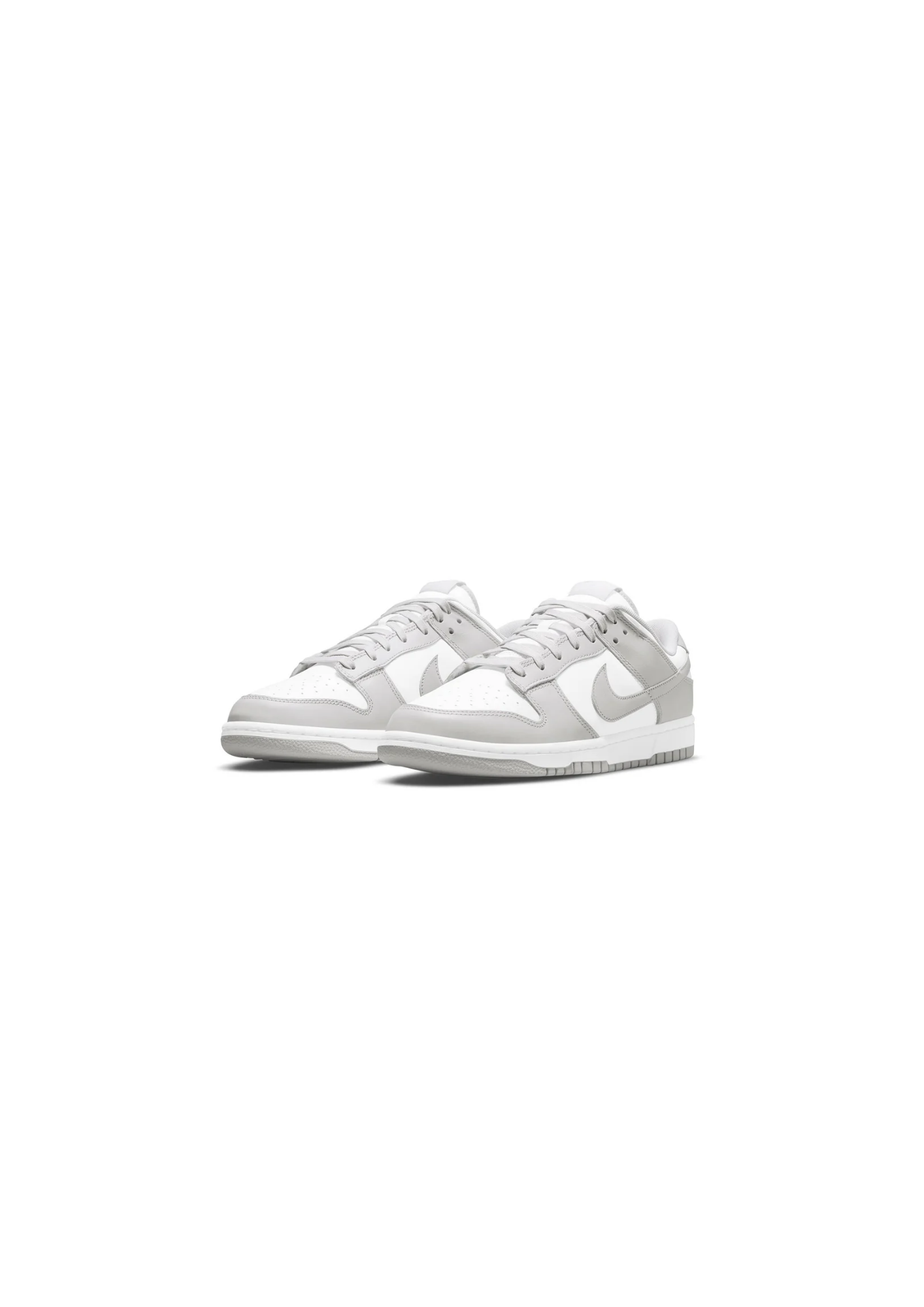 The Nike Dunk Low Grey Fog features a white leather upper with Grey Fog leather overlays and Swooshes. From there, a matching woven tongue label, heel tab, and sole completes the design.