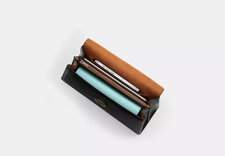 Detachable strap with 22" drop for shoulder or crossbody wear