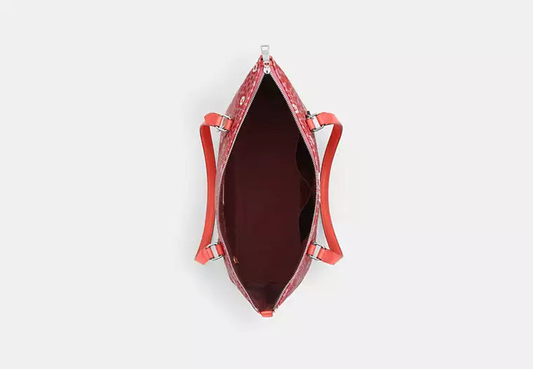 The Coach Gallery Tote Bag With Floral Print is a perfect balance of statement-making style and everyday practicality. Crafted in printed coated canvas with a romantic floral motif, this spacious tote fits a 13” laptop and all your daily essentials with ease. Multiple pockets keep everything organized, while the zip-top closure secures your belongings on the go. From weekday commutes to weekend errands, this tote adds a feminine and functional touch to any outfit.