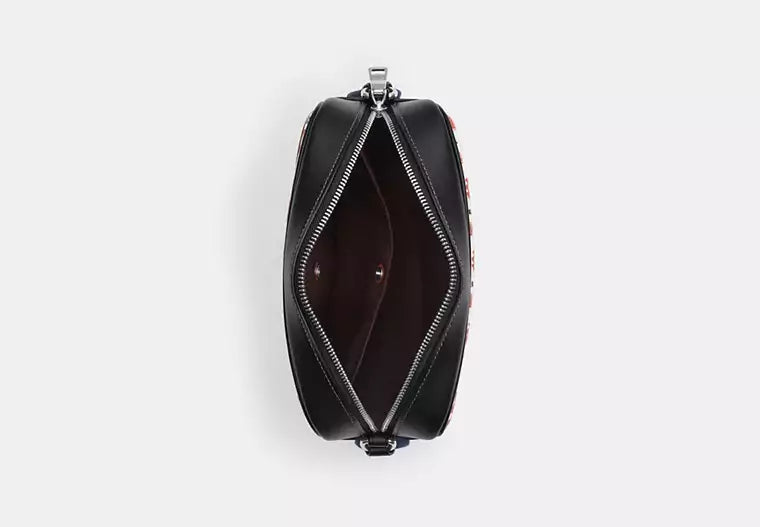 The Jamie Camera Bag With Floral Print adds a playful twist to a functional favorite. Crafted in printed coated canvas, it features a secure zip closure along with an outside open pocket and an inside snap pocket for organization. Its compact design makes it easy to carry, while the adjustable 24” strap allows for versatile shoulder or crossbody wear. Lightweight and stylish, it’s an effortless everyday companion with a feminine floral touch.