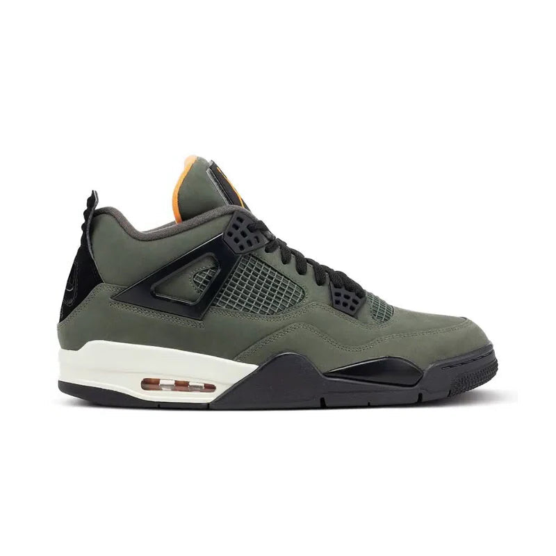 The Jordan 4 Retro OG SP Undefeated (2025) revives a legendary collaboration with a modern twist, showcasing premium materials and a bold yet refined color palette. The upper is constructed from high-quality nubuck that delivers a smooth, plush feel, accented by sturdy mesh inserts on the side panels and tongue for breathability and texture contrast. Military-inspired hues dominate the design, while signature TPU wings and heel tabs maintain the classic Jordan 4 framework. The midsole features visible Air cushioning in the heel for lightweight comfort and impact protection, complemented by a durable rubber outsole with multidirectional traction for versatile performance. Finished with co-branded elements that pay homage to Undefeated’s iconic aesthetic, this pair balances heritage design with a contemporary streetwear edge, making it a standout addition to the Jordan legacy.