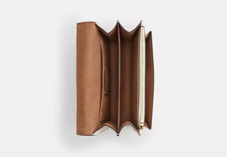 The Klare Crossbody Bag In Signature Canvas offers timeless style with modern versatility. Its strap adjusts for three ways to wear—short or long on the shoulder or as a crossbody. Designed with an outside slip pocket, inside zip and multifunction pockets, and a secure snap closure, it balances practicality with polished design.