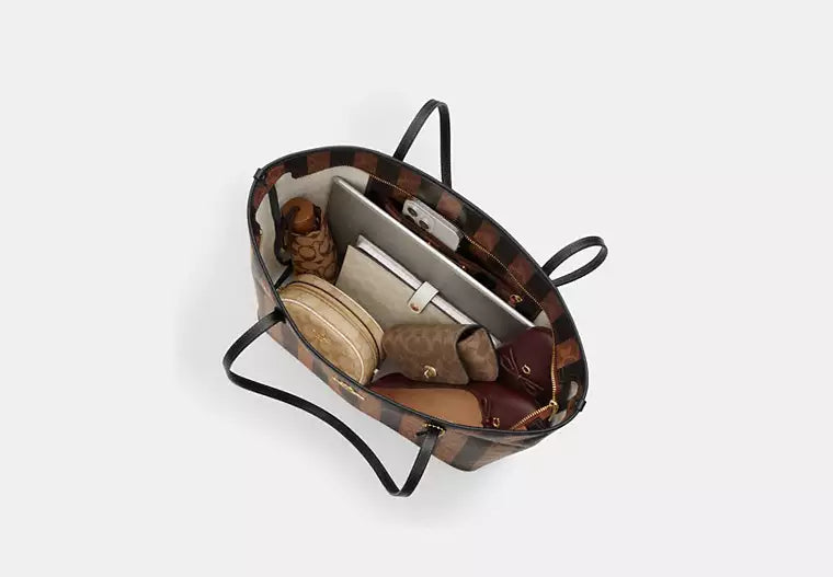 The Large City Tote Bag In Signature Canvas With Stripe is a spacious and stylish carryall designed for everyday versatility. Crafted from Coach’s signature coated canvas, it features bold stripe detailing that adds a modern touch. With its roomy interior, secure zip closure, and inside zip pocket for organization, it’s perfect for work, travel, or daily errands. Long, sturdy handles provide comfortable carry, making it both practical and polished.