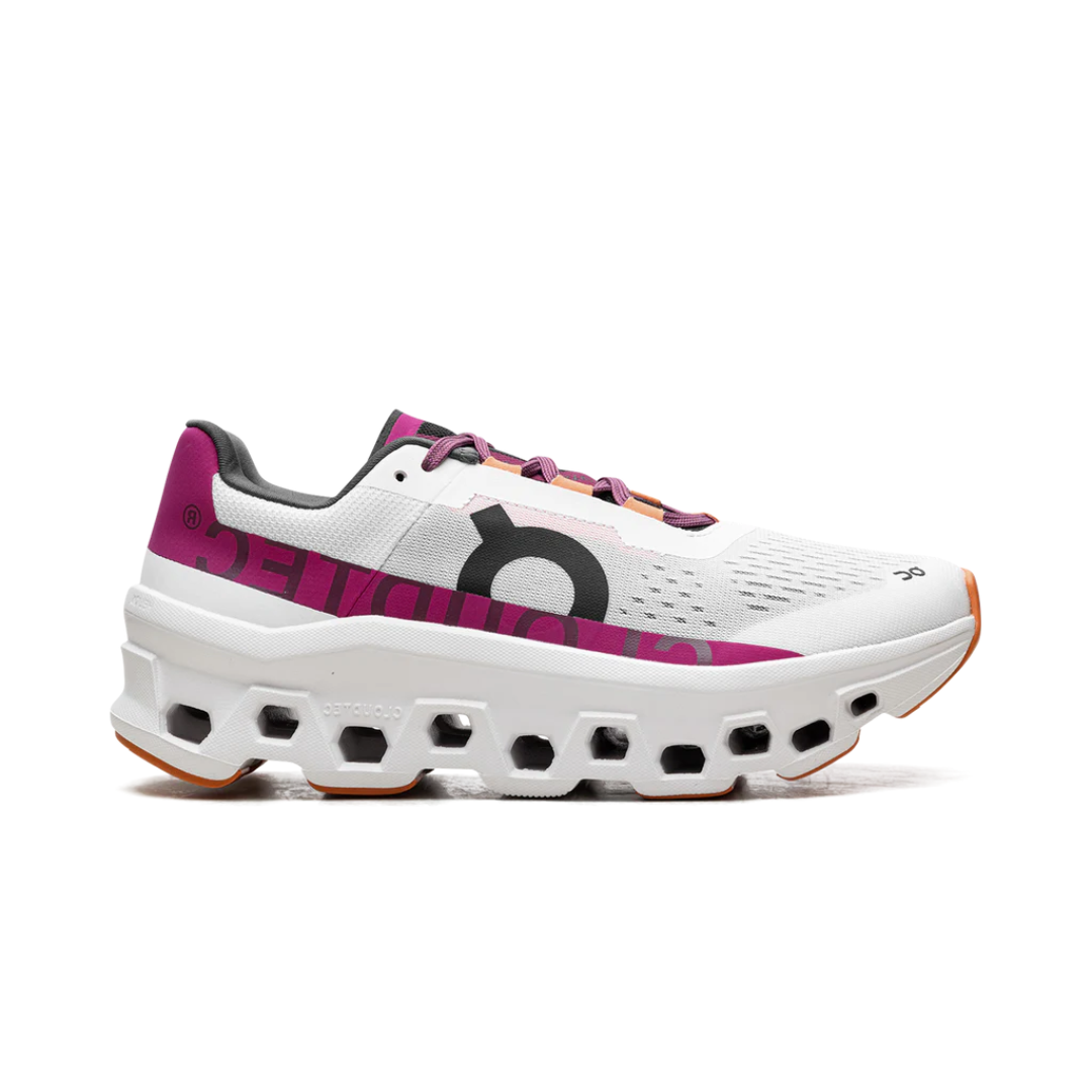 The On Running Cloudmonster Undyed-White Aurora delivers a bold blend of comfort and energy return with a clean, understated design. Its upper is constructed from a breathable mesh that balances durability with lightweight performance, dressed in a subtle undyed white tone accented by aurora-inspired hints that bring a soft, modern finish. Oversized CloudTec® pods along the midsole create a highly cushioned underfoot feel, while the rocker shape encourages smooth forward momentum during runs or all-day wear. The Helion™ superfoam adds a layer of responsiveness, and the Speedboard® plate embedded within enhances propulsion without sacrificing comfort. Finished with durable rubber traction zones and minimalistic branding, this pair combines performance-driven engineering with a versatile aesthetic that feels as suitable for everyday wear as it does for high-mileage sessions.