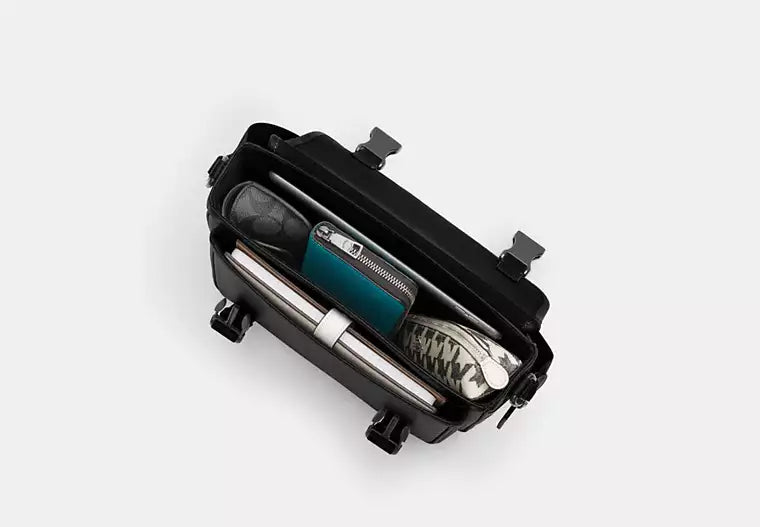 The Racer Messenger Bag is a sleek, functional design crafted in smooth calf leather. Its spacious interior with multifunction pockets keeps essentials organized, while an outside open pocket provides quick access. The secure speedclip closure ensures convenience on the go, and the adjustable strap allows for comfortable shoulder or crossbody wear. A refined everyday companion built for work or casual use.