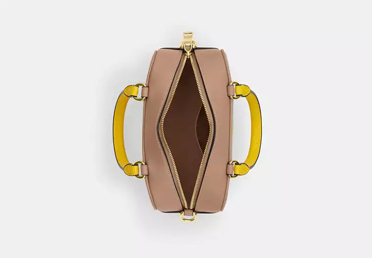 The Satchel Crossbody Bag With Plaid Print is a compact, versatile style crafted in jacquard with smooth leather accents. Designed with short handles and a detachable strap, it can be carried by hand, on the shoulder, or crossbody. Two interior credit card slots and a secure zip closure keep essentials neatly organized. Made with recycled polyester and sustainably sourced cotton, it reflects Coach’s commitment to eco-conscious craftsmanship while adding a playful plaid touch.