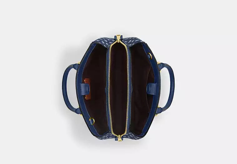 The Savannah Small Carryall Bag With Floral Print in printed coated canvas is both stylish and practical. It features detachable shoulder/crossbody straps, top handles, an inside multifunction pocket, center zip compartment, magnetic snap closure, and four protective feet for organized, secure everyday use.