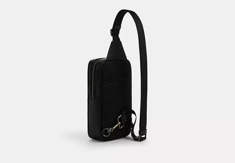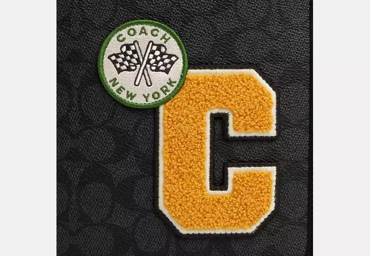 The Sullivan Pack In Signature Canvas With Patches combines compact utility with playful character. Crafted from signature coated canvas with refined pebble leather and smooth calf leather details, it offers a slim profile that’s easy to carry. An inside multifunction pocket and secure zip closure keep essentials organized, while the adjustable strap clips to either side for versatile crossbody wear. Finished with bold patches, this pack is both practical and expressive.