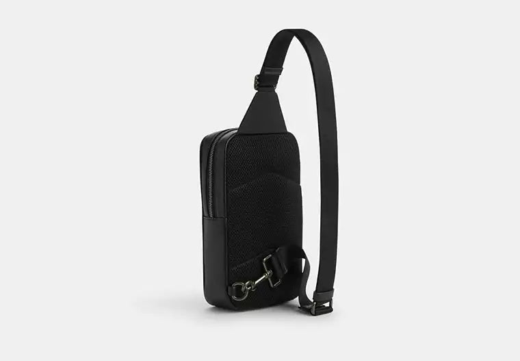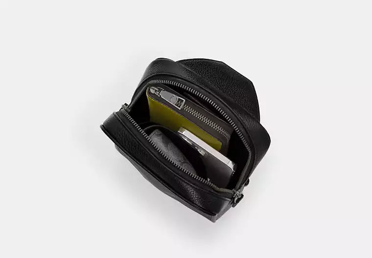 The Sullivan Pack In Signature Canvas With Patches combines playful detailing with practical design. Crafted in signature coated canvas with refined pebble and smooth calf leather accents, it features a slim, functional silhouette. An inside multifunction pocket and secure zip closure keep essentials organized, while the adjustable strap clips on either side for versatile crossbody wear. Finished with bold patches, this pack adds a fun, distinctive edge to everyday carry.