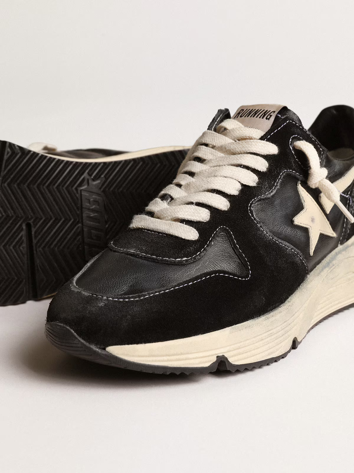 Women's Running Sole in black nappa and suede